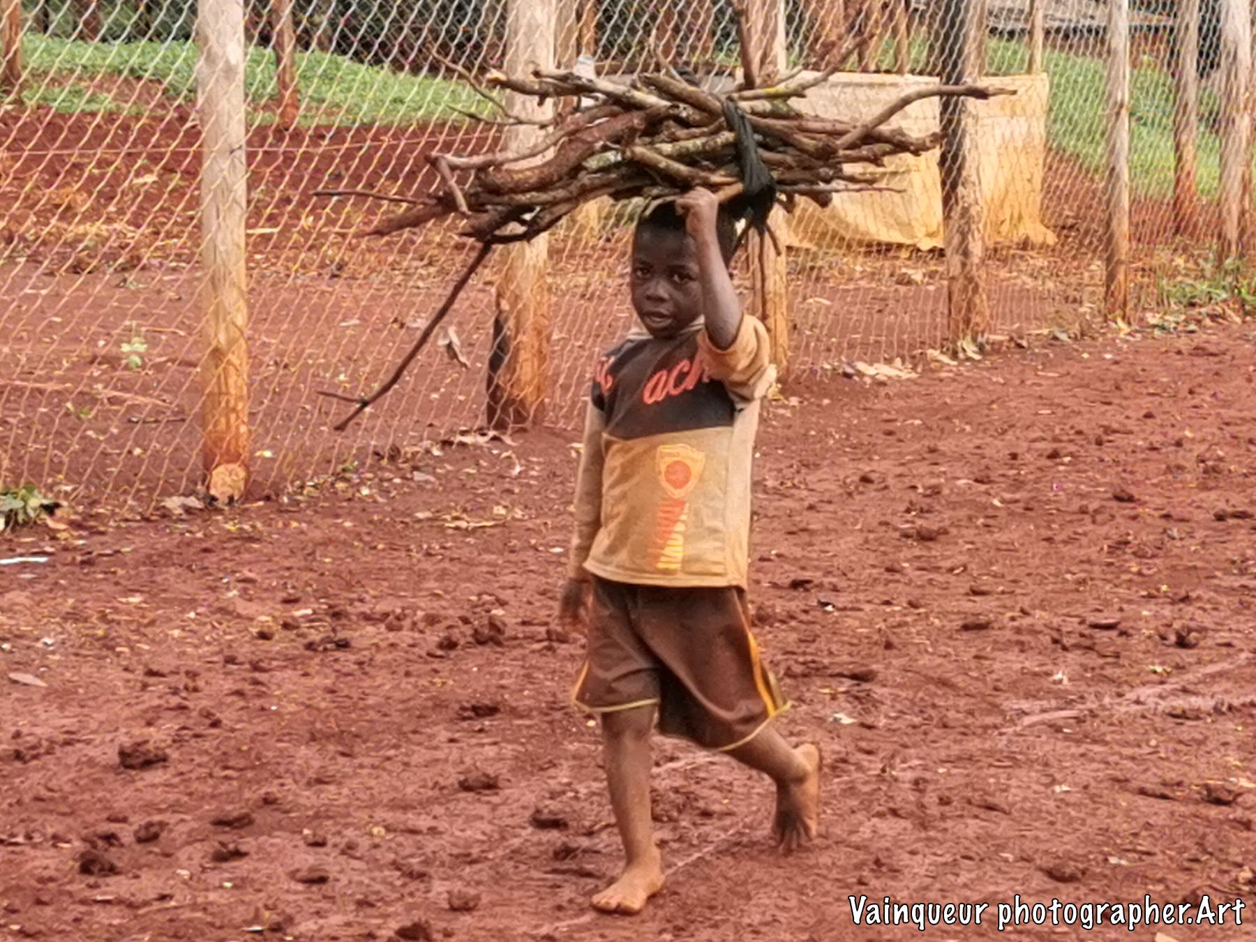 This little boy is not worried about his barefoot condition, he gave himself the courage to pick up the pieces of the wood falling after a heavy rain. He said: "We don't have the charcoal to prepare the food, but we have to prepare the beans. My mother told me to bring the pieces of the wood and then she can prepare the beans."