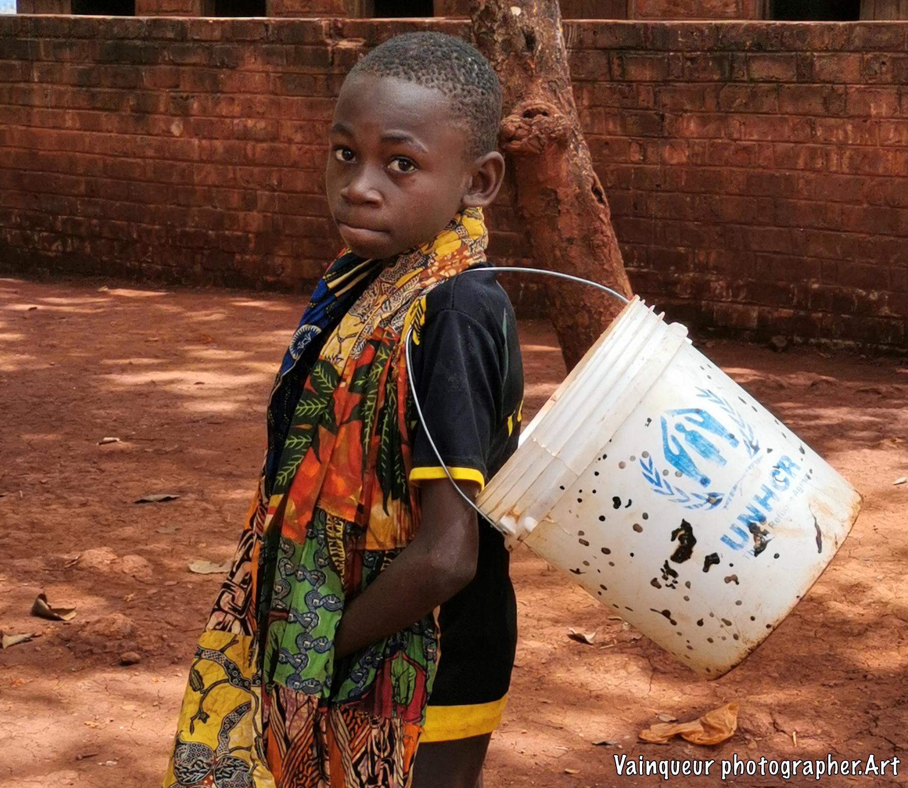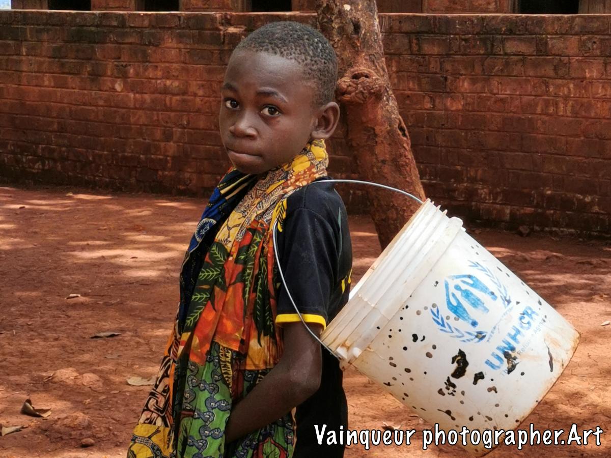 Stop for understanding the message, to our photo reports of the project during the refugee camp. At the time when we were on the place of event, we met this young boy who he is from zone 11. My intention is based on the bucket he has. I asked him the questions why such signs on the bucket, the young man did not hesitate to answer us: "I had added marks as a reference because all the buckets in the camp were almost alike and people were exchanging buckets at the tap places.."