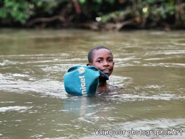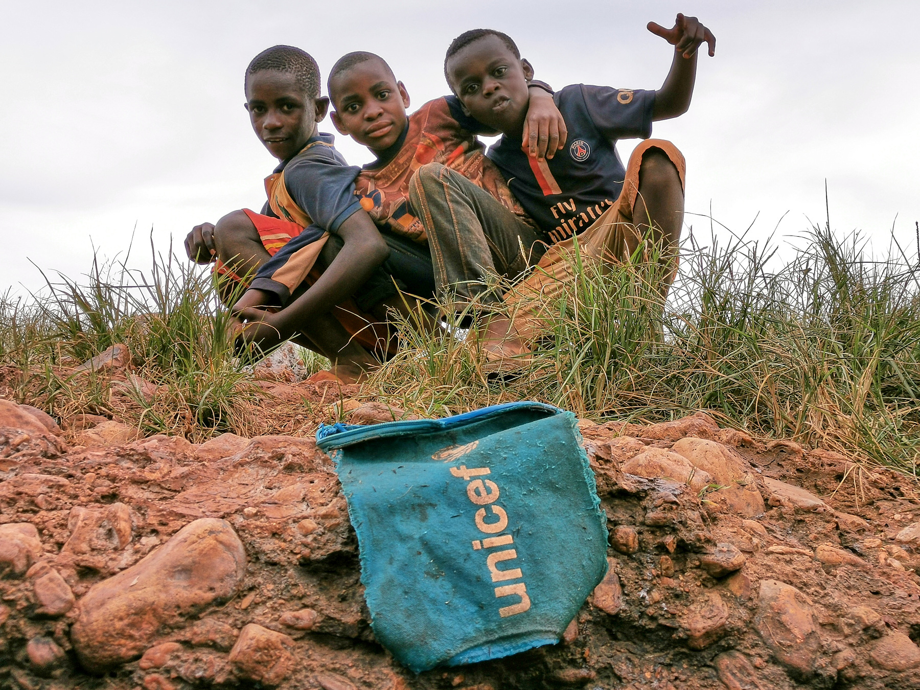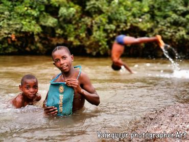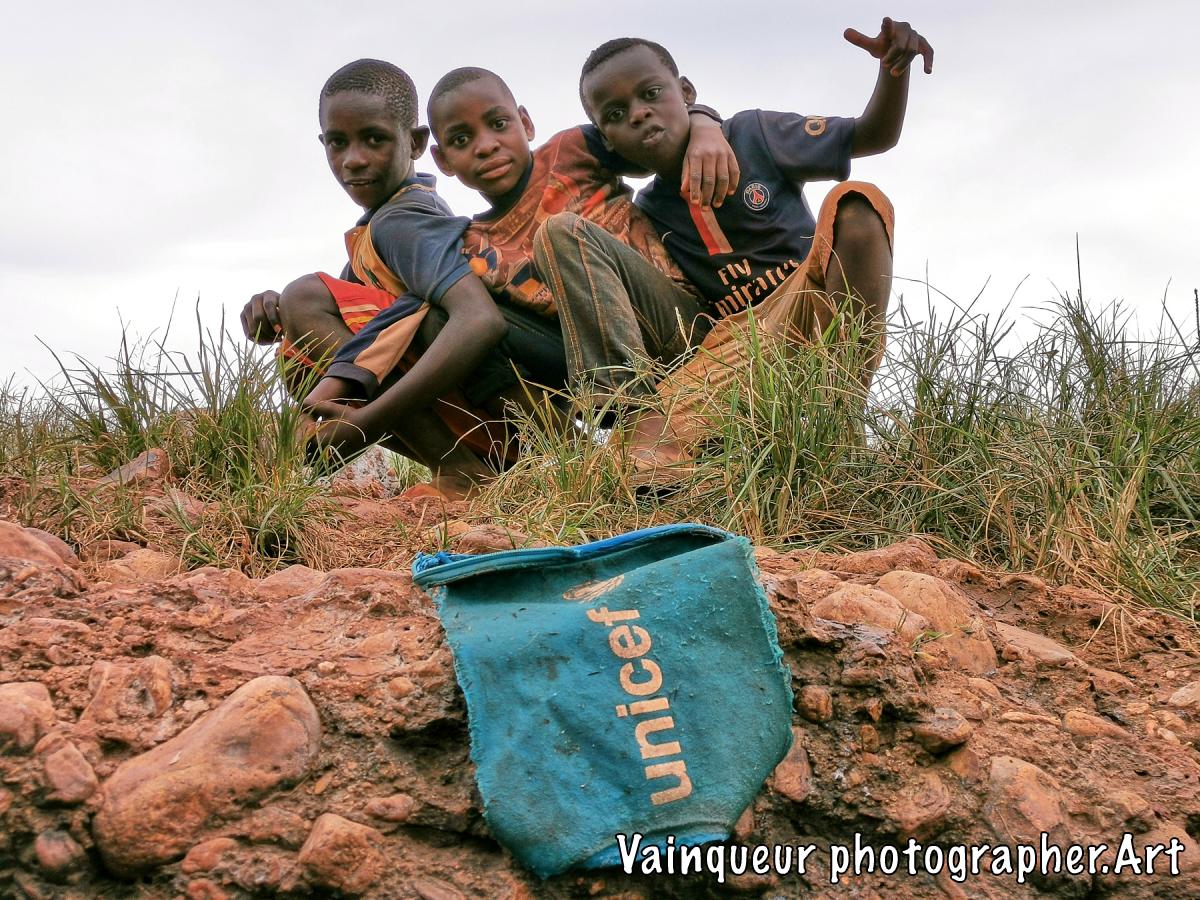 The scene takes place at the Nyarugusu river located in the refugee camps of Nyarugusu. These young children come from village B1 in zone 1 and they are going towards the river, which is there in zone 14. These young boys have said, there was the football field. Ambiance started by the river after seeing a UNICEF logo on a fabrics in blue. Their childhood games with these UNICEF fabrics in the river water motivate me to take the pictures. Have refugee children in Nyarugusu found UNICEF donations? Is UNICEF based for refugee children from Nyarugusu?