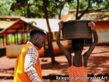 When my friend and I walked through the reception center to capture images and small stories of camp life, a girl pumping water called for help. She said: "S 'sam samahani kaka zangu na itaji msaada muni twishe." That means: "Excuse me, my brothers, I need your help to lift this pan."