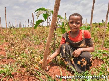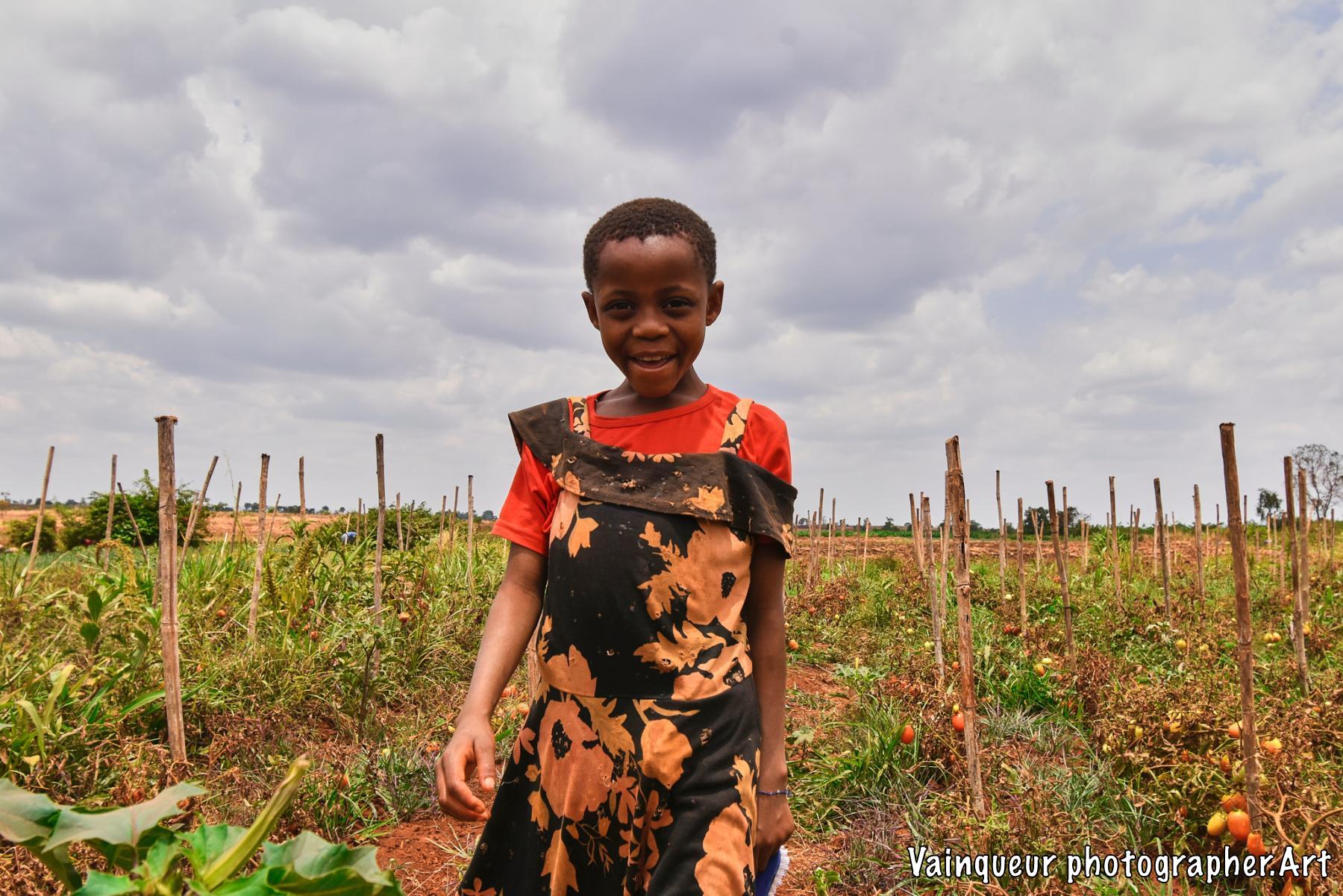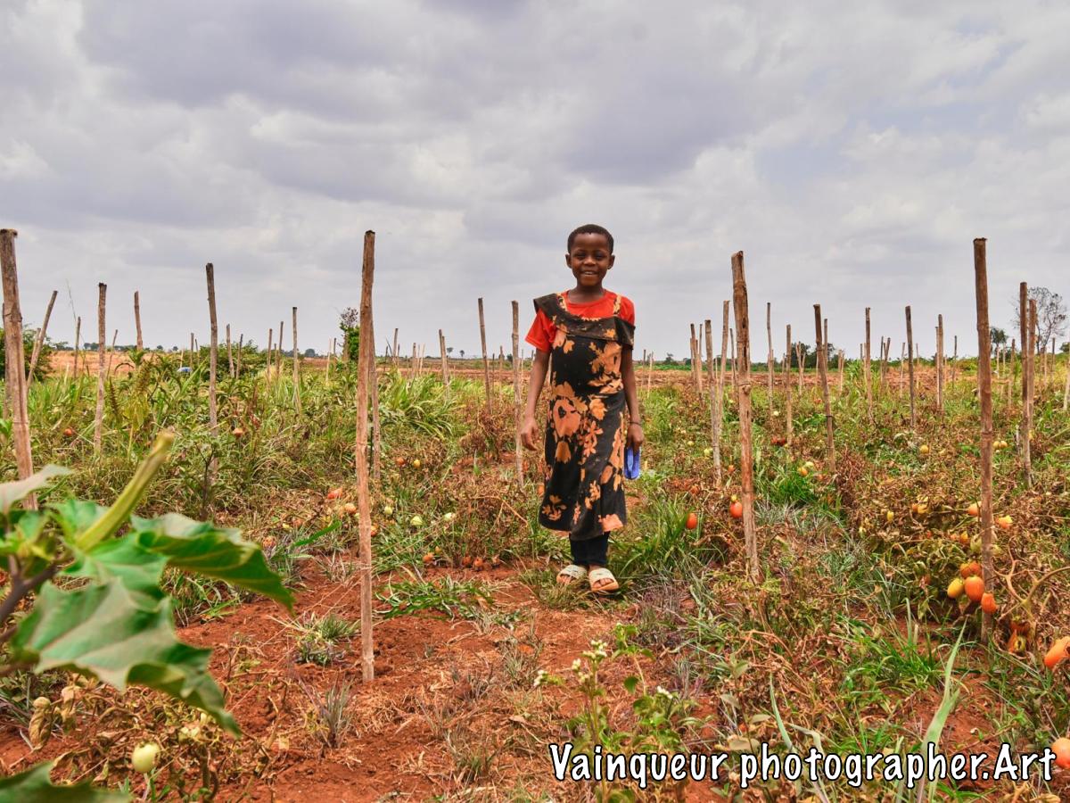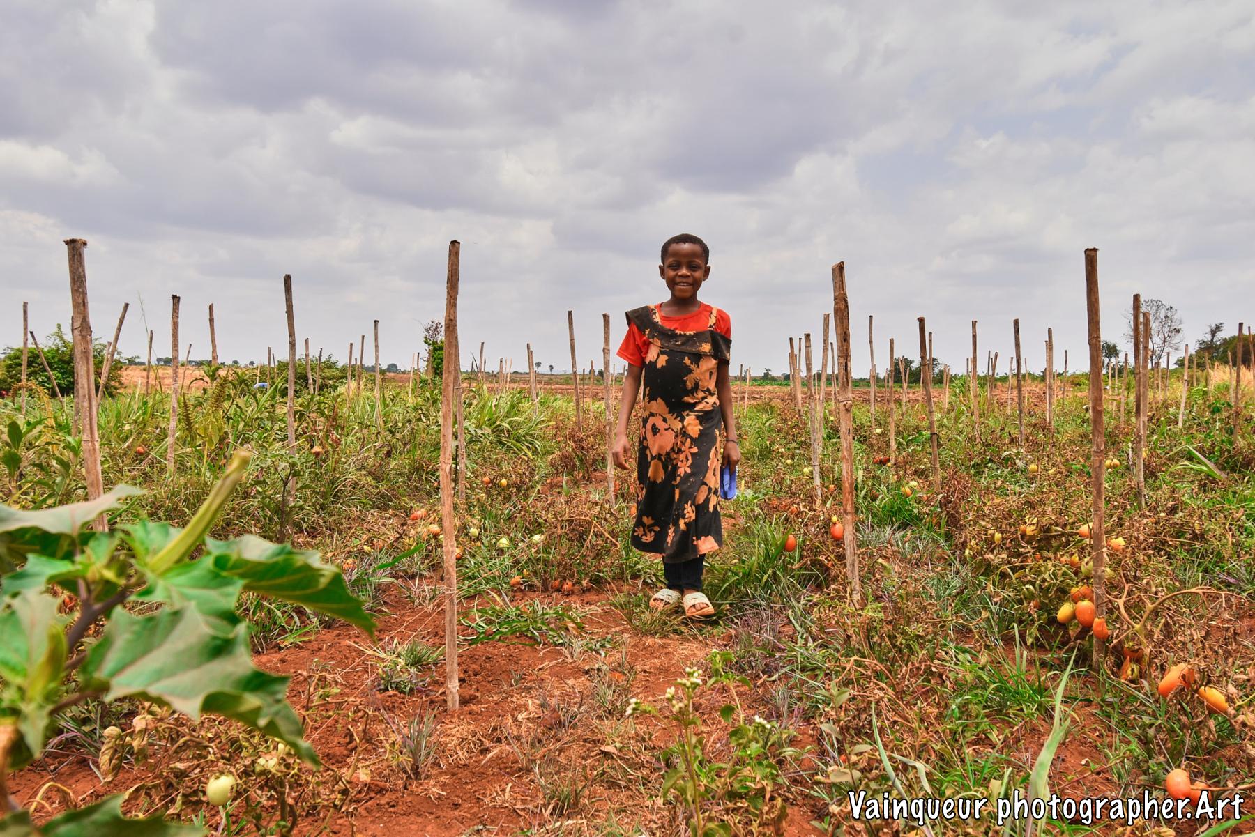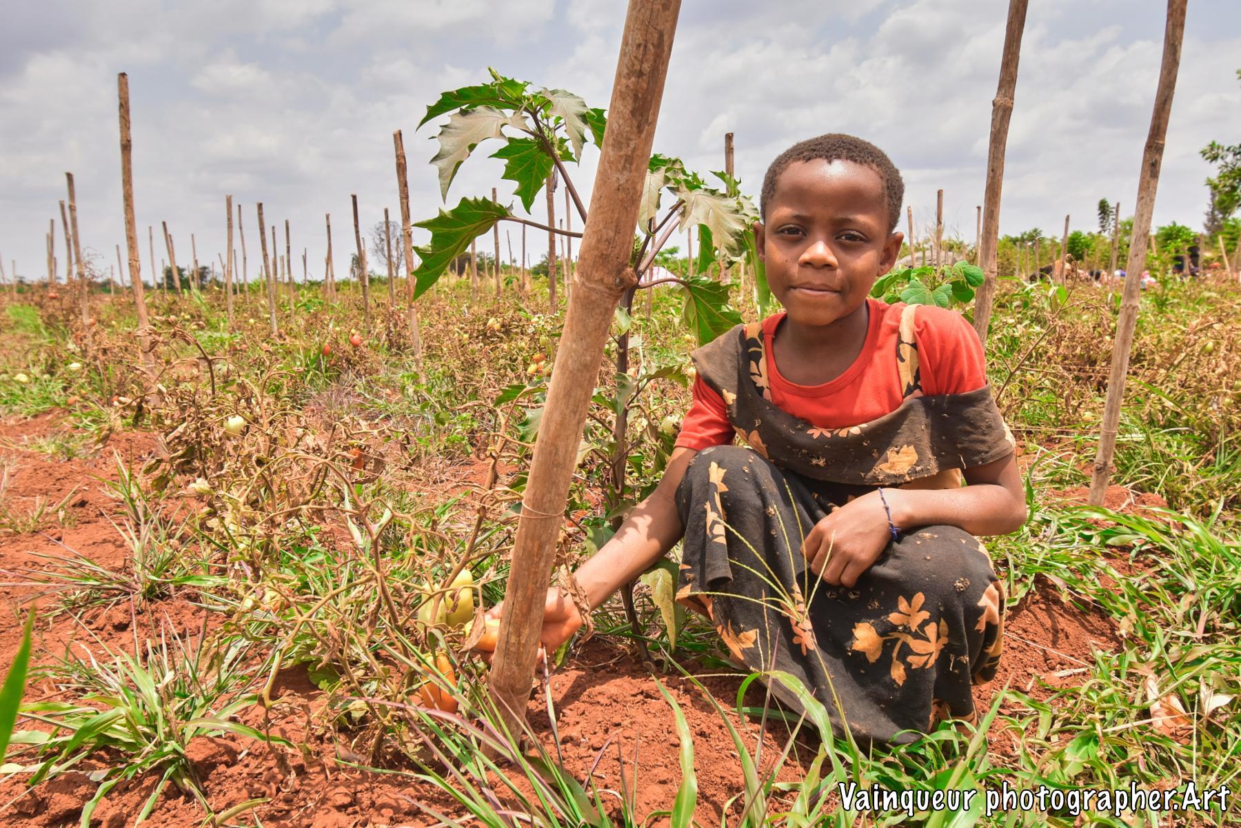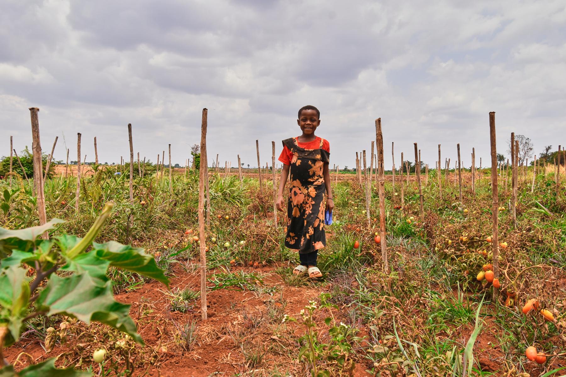 Esta (8) does maintenance work in their tomato garden on the outskirts of their home near the Nyarugusu river.