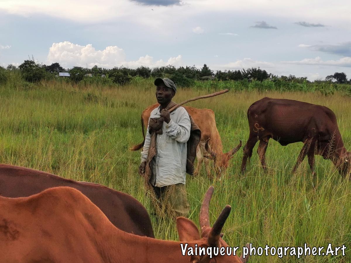 Breeding in Nyarugusu, of course, some farmers have several cows. On this photo the shepherd had called me, so that I could take a photo with his cows. I asked him, if all the cows were his. He replied that: "There are 30 cows in general, but these 30 cows are for 4 people. So I am the shepherd, the owner of these cows pays me to keep their cow in the bush. And all these cows are kept on the same farm."