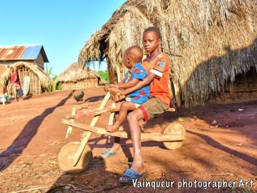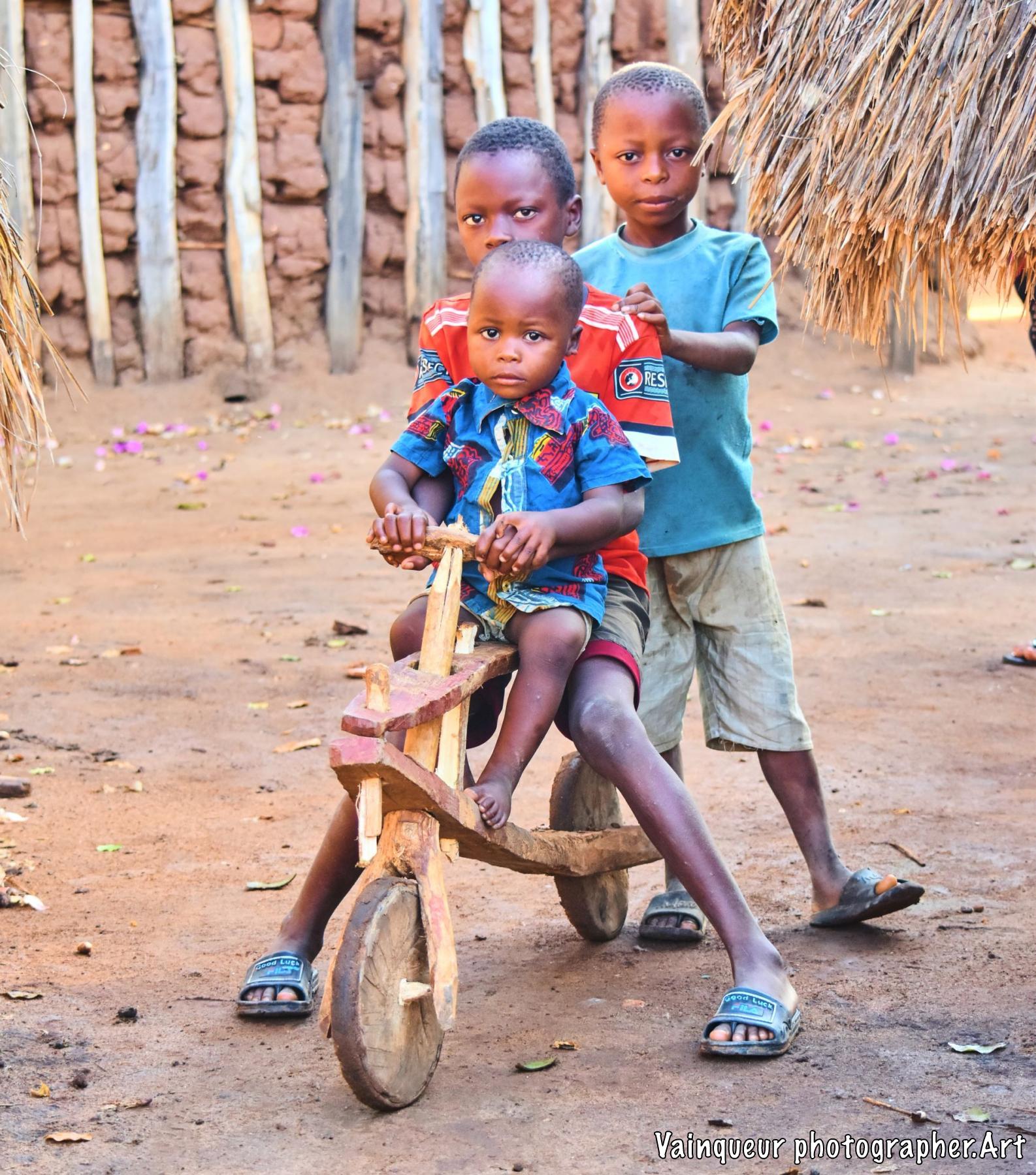 Happy to meet these children of the same family with their means of transport out of wooden, it is a little funny even it is a thing to encourage so that it makes a movement of transport something and also it makes busy the children in this villages to play with and also for creativity has always been a key to any productive science field.
