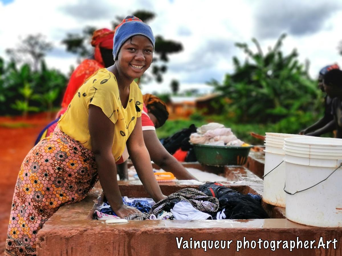 While passing to Zone 10 in the Burundian parts, I met several women and girls who were washing clothes. The girl in the photo is called Nadia. Today, she decided to wash the clothes and dresses of her boyfriend and sister and the boy's neighbor. The cleaning place is located a few meters from her house.