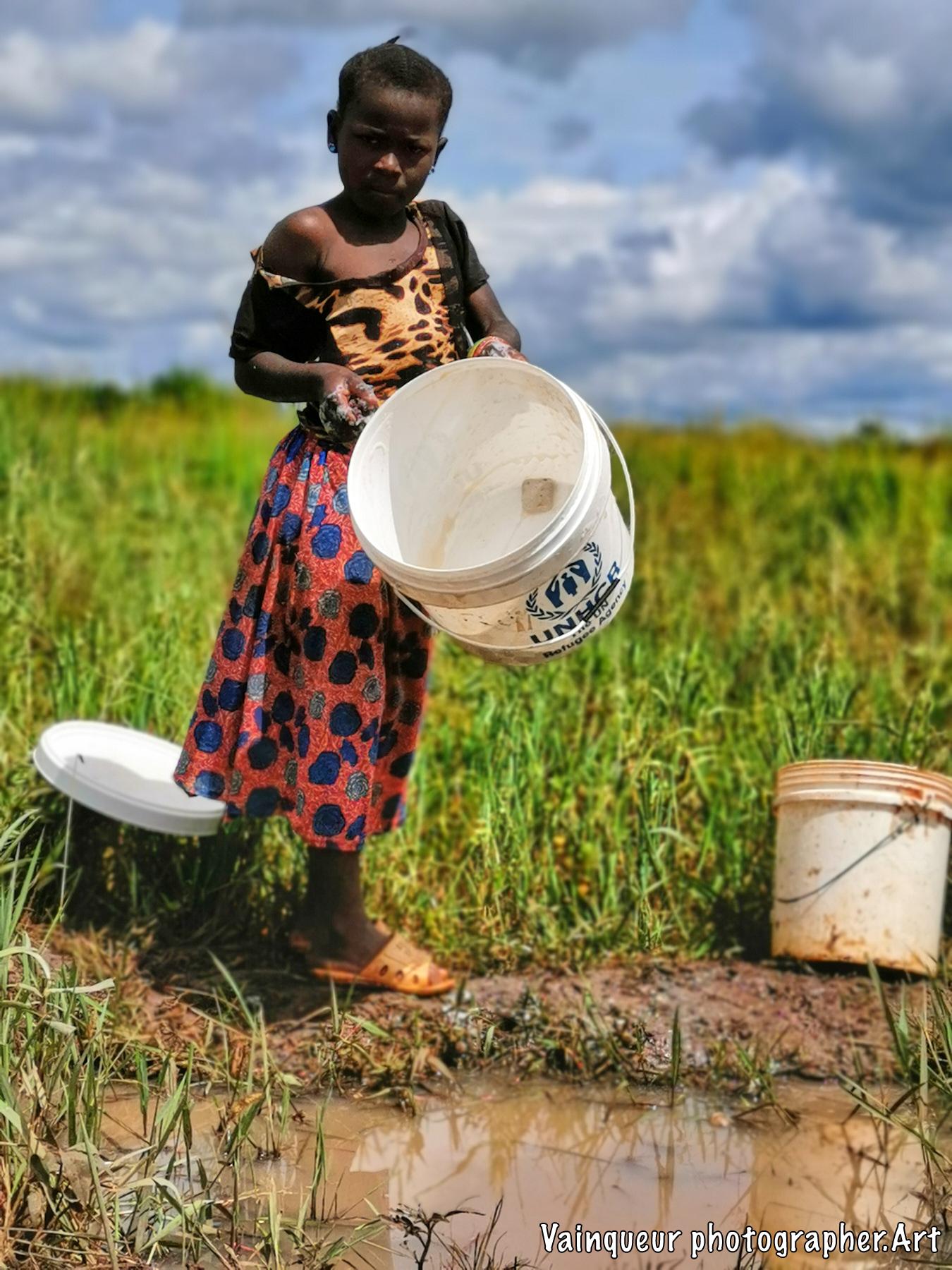 We had the chance to exchange a few words with this girl. She explains to us that her mother went to the depot to receive food and that she takes care of the maintenance of the house and other things. Her mother will find everything in good condition.