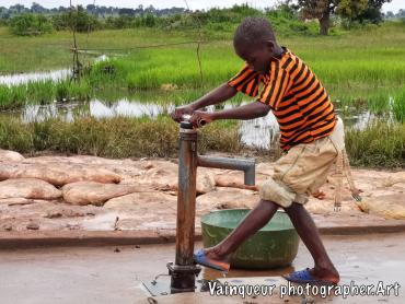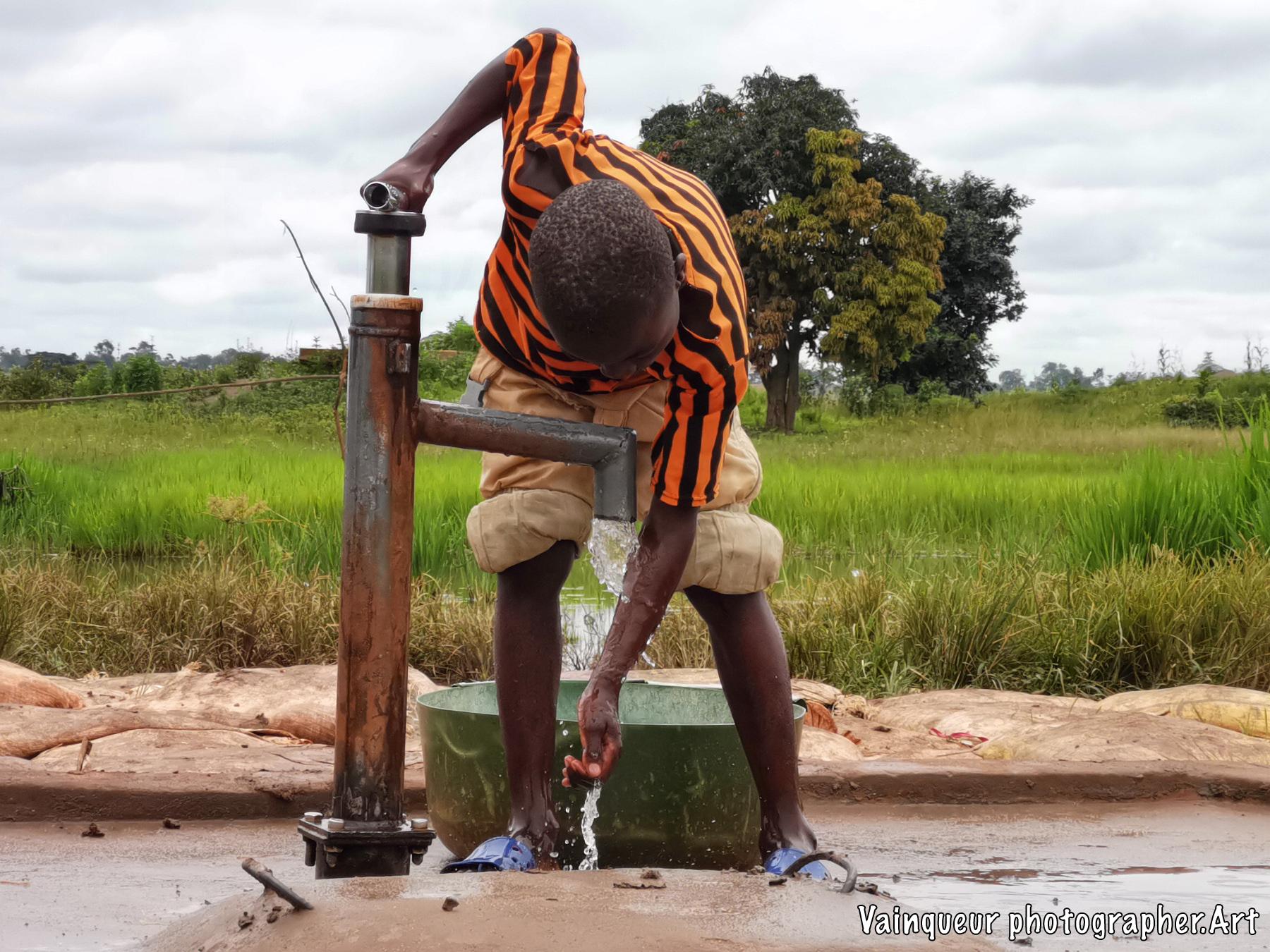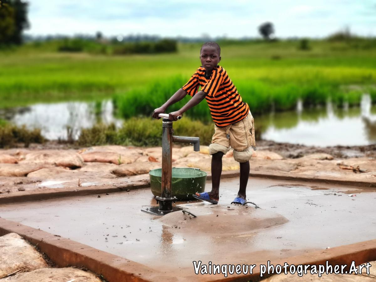 The youngster lives very close to the pump. He was on the football field and when he got home, he discovered, that he has no water to take a shower and go to school. This little boy headed straight to the pump to get rid of the dirt. He said: "I don't have time to wash my whole body anymore, so I wash my head, arms and feet. My time is over, I have to be in school right now!"