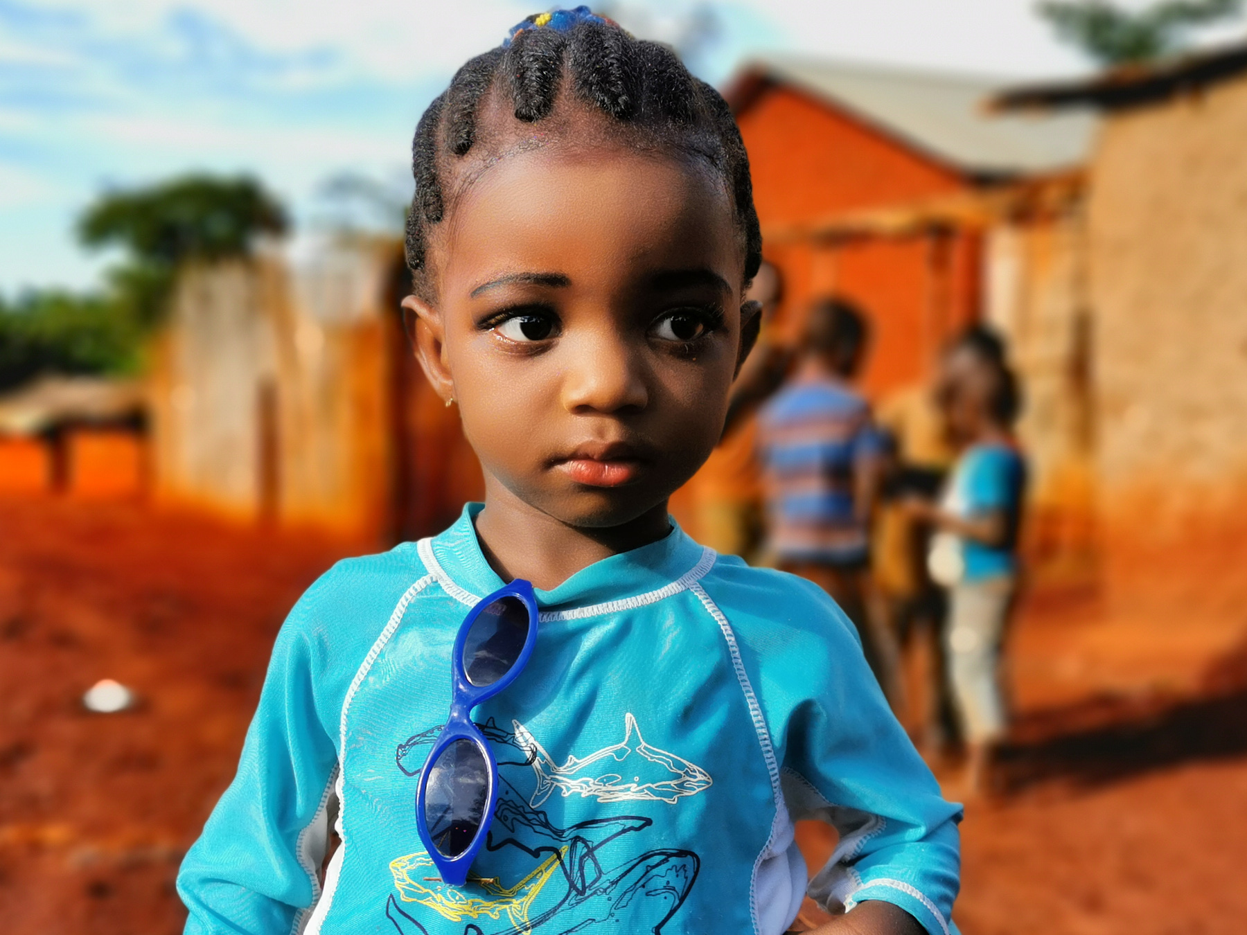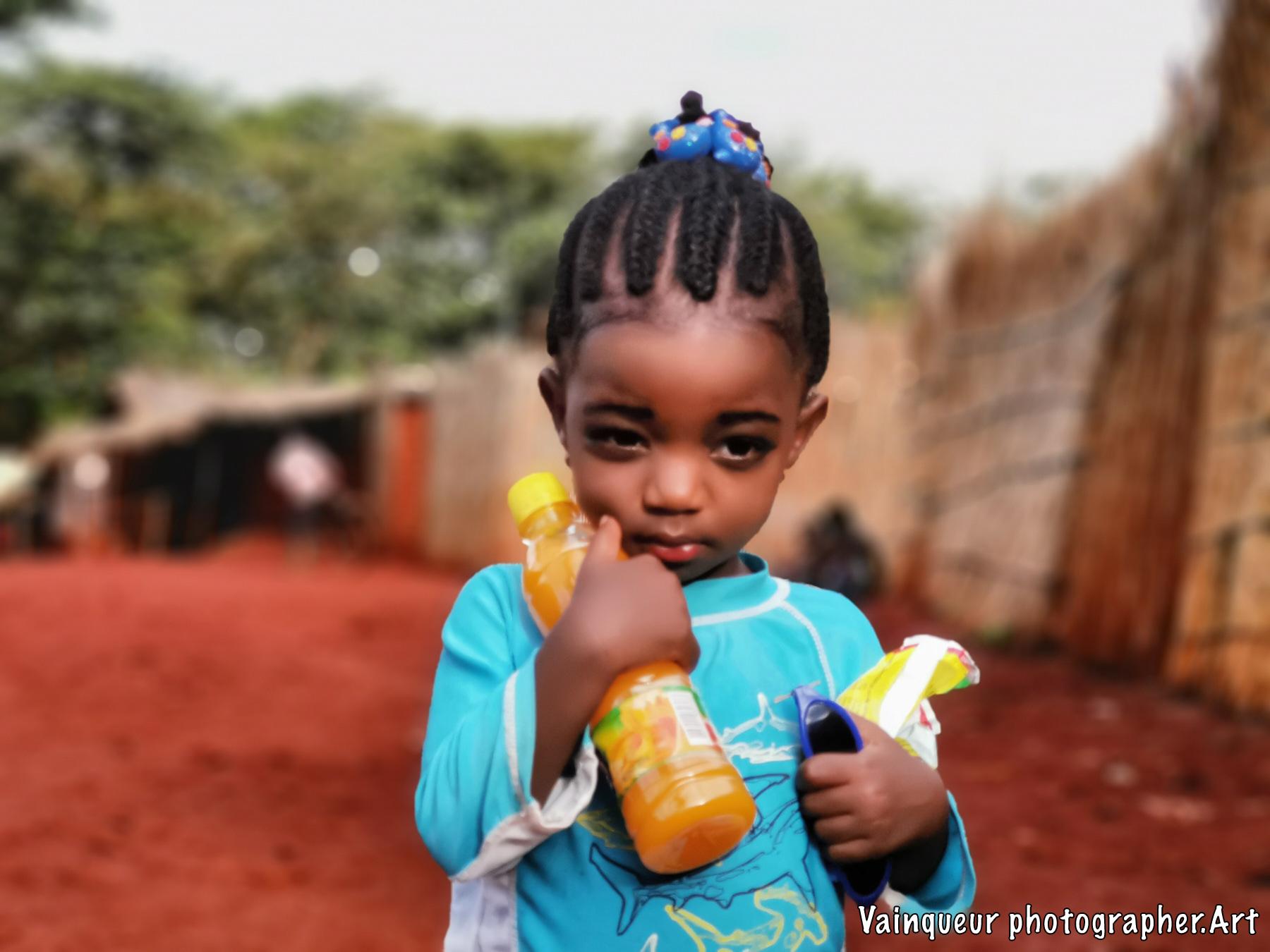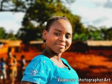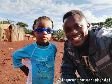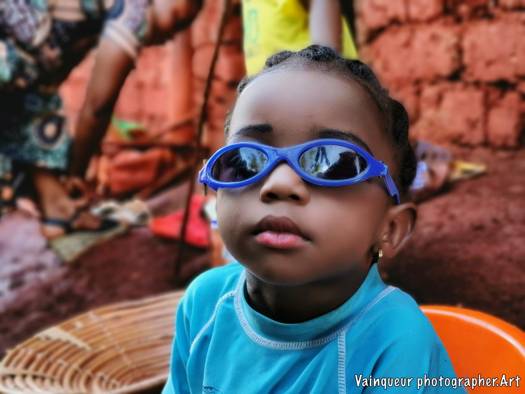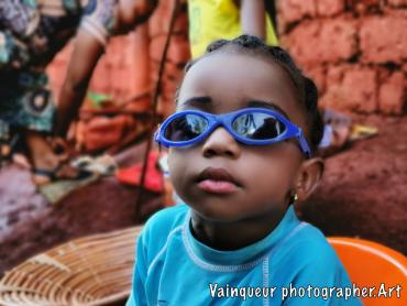 She was  wearing her new glasses, Marceline decided to move away from her friends who were playing in the dust and her behavior had changed so much, she became calm without talking much or laughing. Afterwards she went to see her father in the sewing workshop to have her father tell her that "Una pendeza" which means "You look nice". I was with her all time to see how it turns out. When she arrived at the workshop, she knew that her father was no longer directly there. She sit on a chair to wait him, one of her father's service colleague said: "You look nice, I will give you a gift" and she replied: "Thank you."
