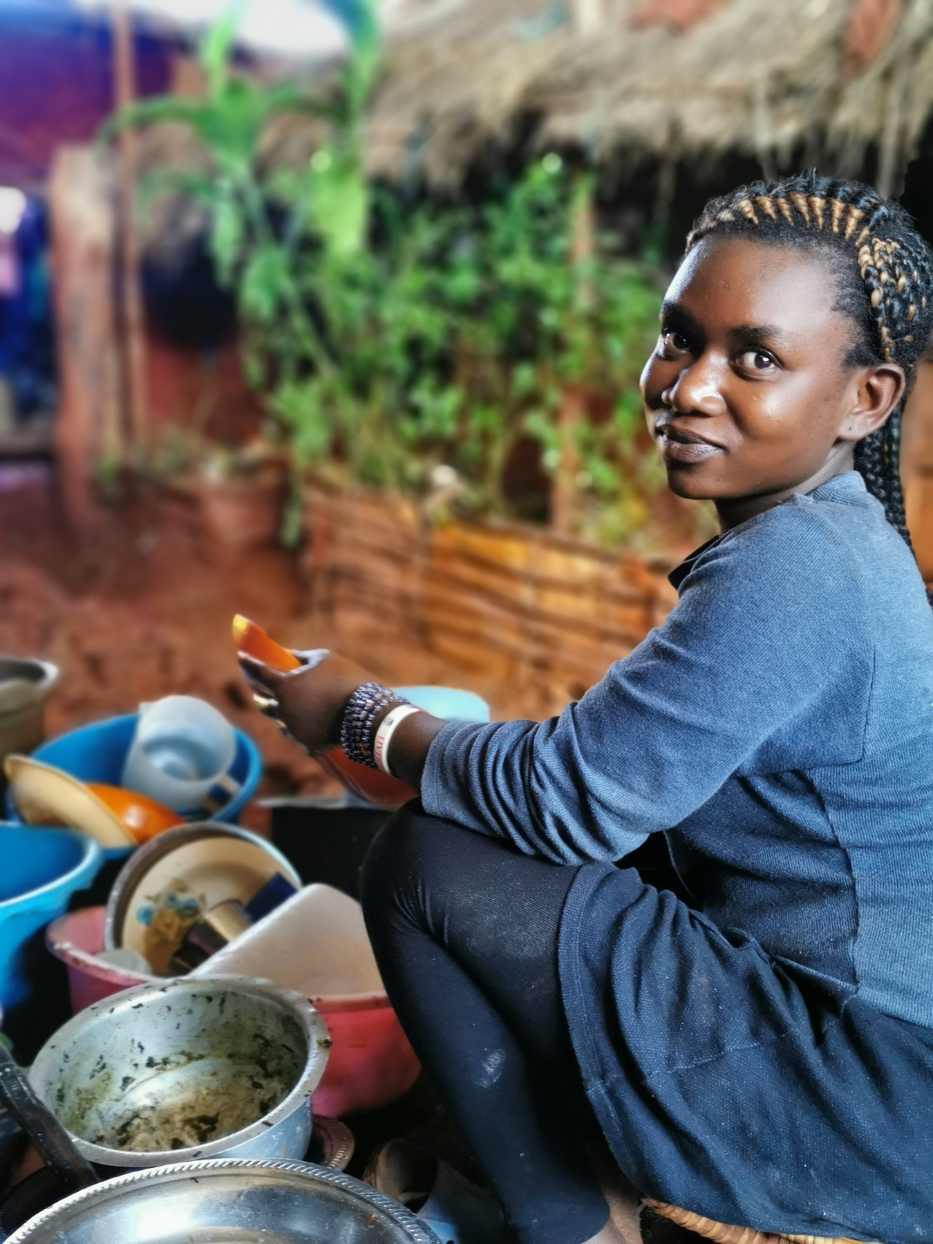 As we pointed out in the erlier article regarding its subject. This morning we were lucky to find her at their house for a little dialogue. She told us that her boyfriend fled the camp during her pregnancy due to his arrest, she has no contact with him. This young woman has the courage to work on housework, her brothers and sisters are on their plot, and everyone has do his job. In Nyarugusu, all the girls have housework whose consists of pumping water, cleaning plates and preparing food for the family.