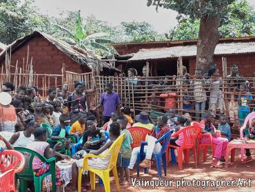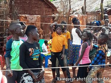 Today Saturday 3/1/2020 the children of Zone 1 village A1 organized a party and invited their parents.  These children are mainly from 8 to 14 years old.  They contributed corn flour, after collecting the flour, they sold that.  The little bit that we had added some other currency to buy the juices, cookies, cake and allocated musical instruments.