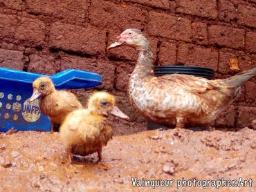 Pig, duck and hen found in Zone 1 Nyarugusu camp. Those responsible for these cattle told us that: "Thanks to my pets that I keep in this plot helps us a lot in the case of sales and each child in the family has the right to have a duck.  Every morning I wake up to go get the pieces of foufou and other food throw in the trash to bring it home envisaged given that to my pigs ." In Nyarugusu camps there are several farmers with domestic animals.