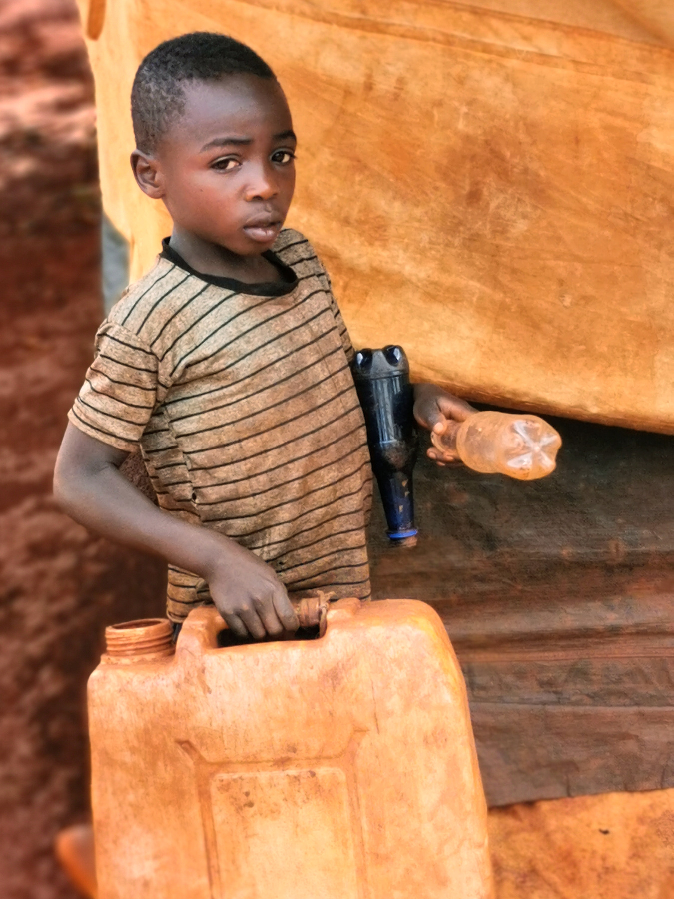 The children of Nyarugusu village often collect plastic bottles for several reasons, some to sell them to bakers who use this plastic in burrowing them.