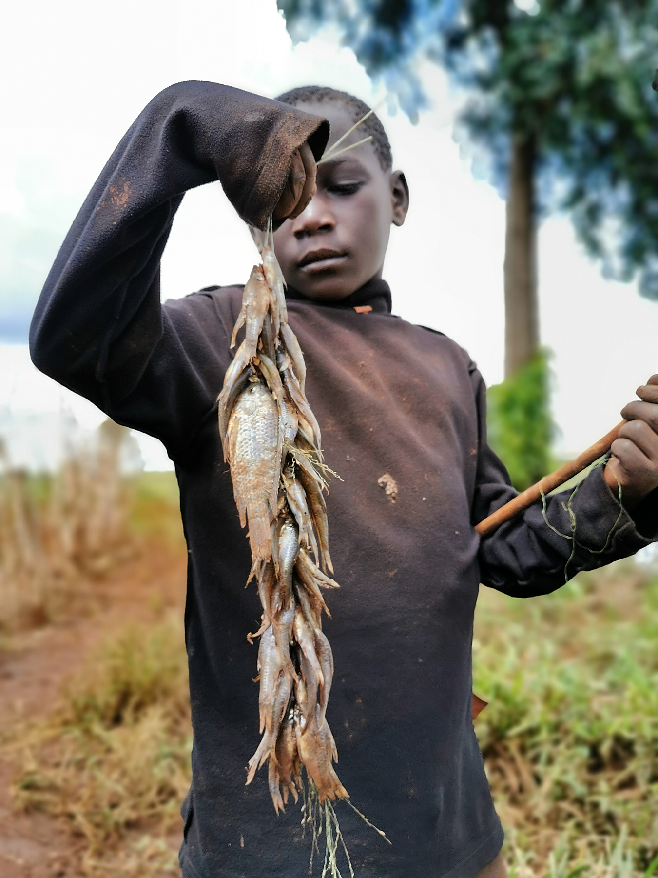 What we found at the edge of Nyarugusu Creek is that some fishermen are looking for money and others are fishing for food. The little fisherman in the photo is fishing for food.