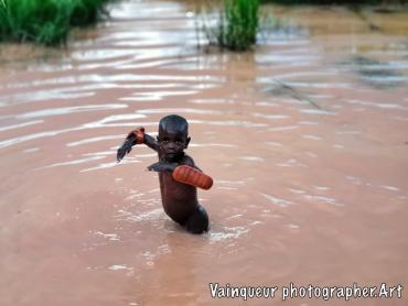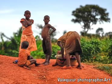 We met the children, girl and boy, who relaxed in Kichiba in washed clothes and others, who were swimming in the dirty water of Kichiba. The water is not dirty for them, but it takes the colour of the red soil of Nyarugusu.