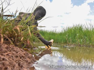 His task is simple, yet essential: to check whether the water is clean enough for his mother to use for washing clothes.