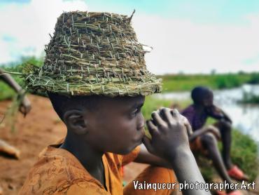 During my short visit to Zone 9 I discovered a young talent who makes a hat with the leaves. He said: "I and my friends spend our half of the day here at the river often in the vacation and that is why we take advantage of looking for the very light "nyasi" sheet to make the hat." And he ended by saying, "We wear these hats under the sun after finishing swimming".