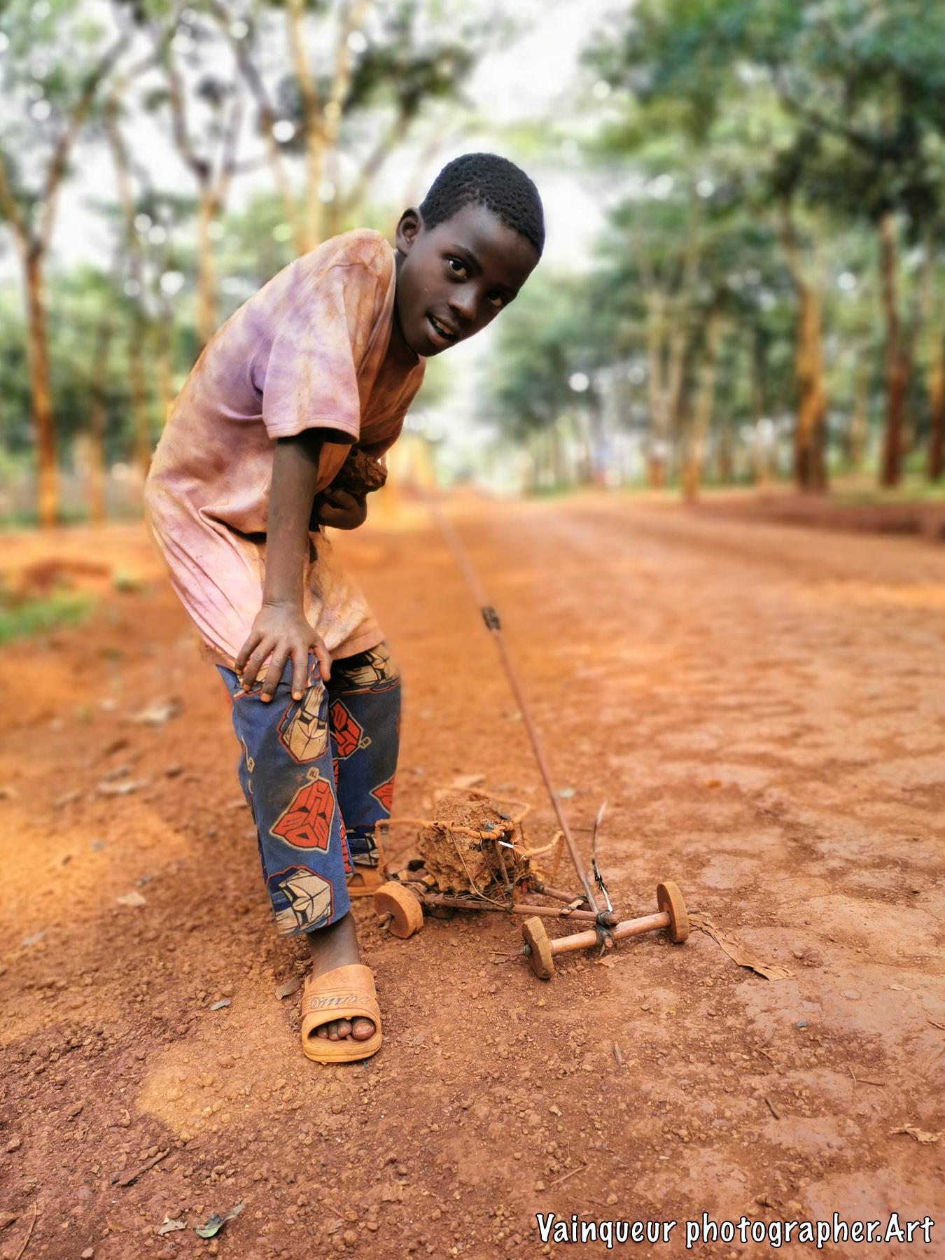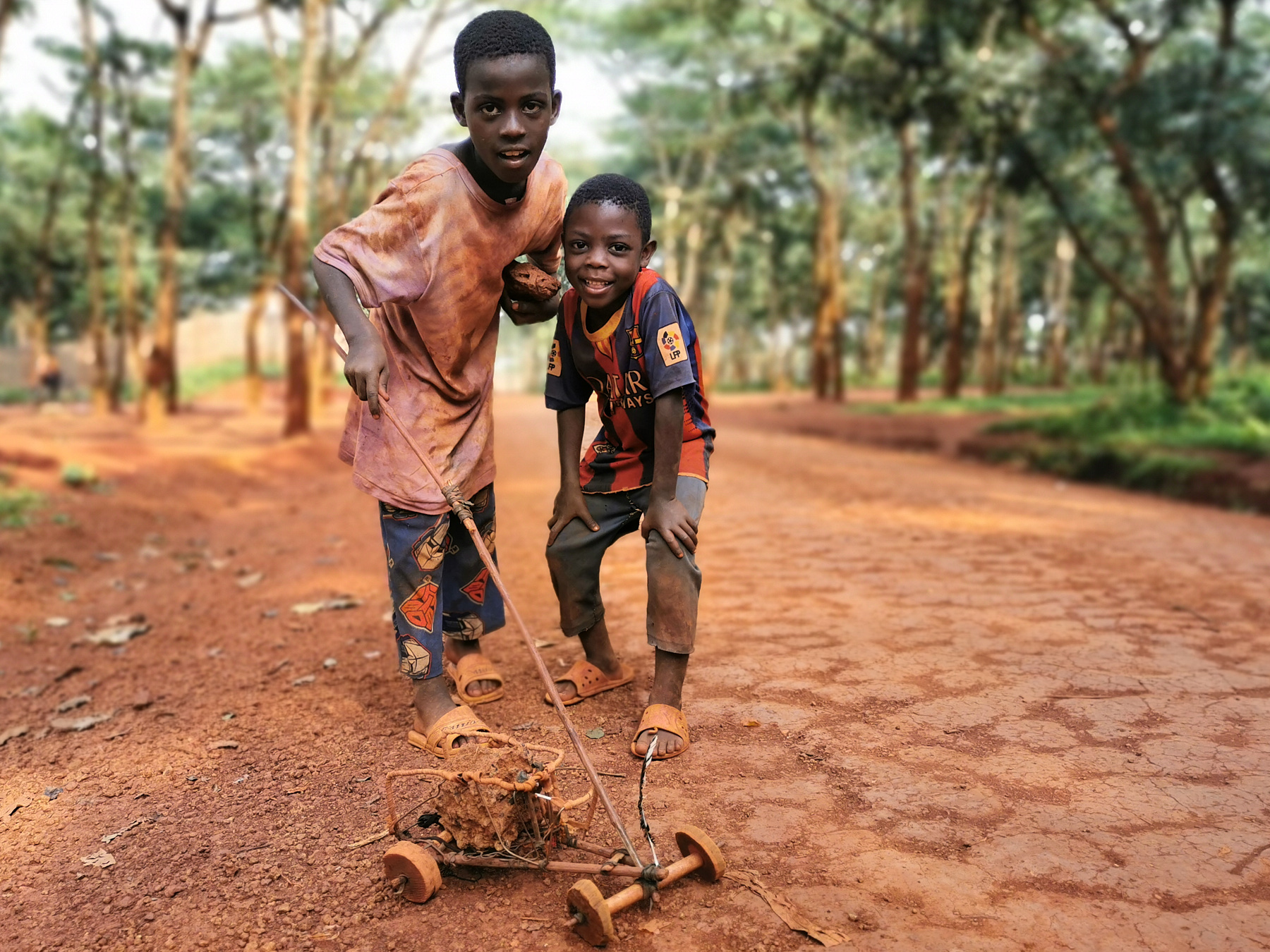 This Saturday in Zone 2, two young children are having fun at their childhood games with a toy imaging an automobile. They tell us, "We are a technician and a future mechanic. If we get a chance in America, we will become good engineers."
